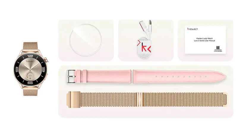 ساعة Kieslect Lora Reno 3 تجمع بين التصميم الأنيق وخفة الوزن بلمسة أنثوية، شاشة AMOLED مشرقة، مقاومة للماء 5ATM، تتبع رياضي وصحي متطور، واتصال Bluetooth 5.3 مع دعم المكالمات، وبطارية تبقى حتى 8 أيام مع وضع توفير الطاقة.
