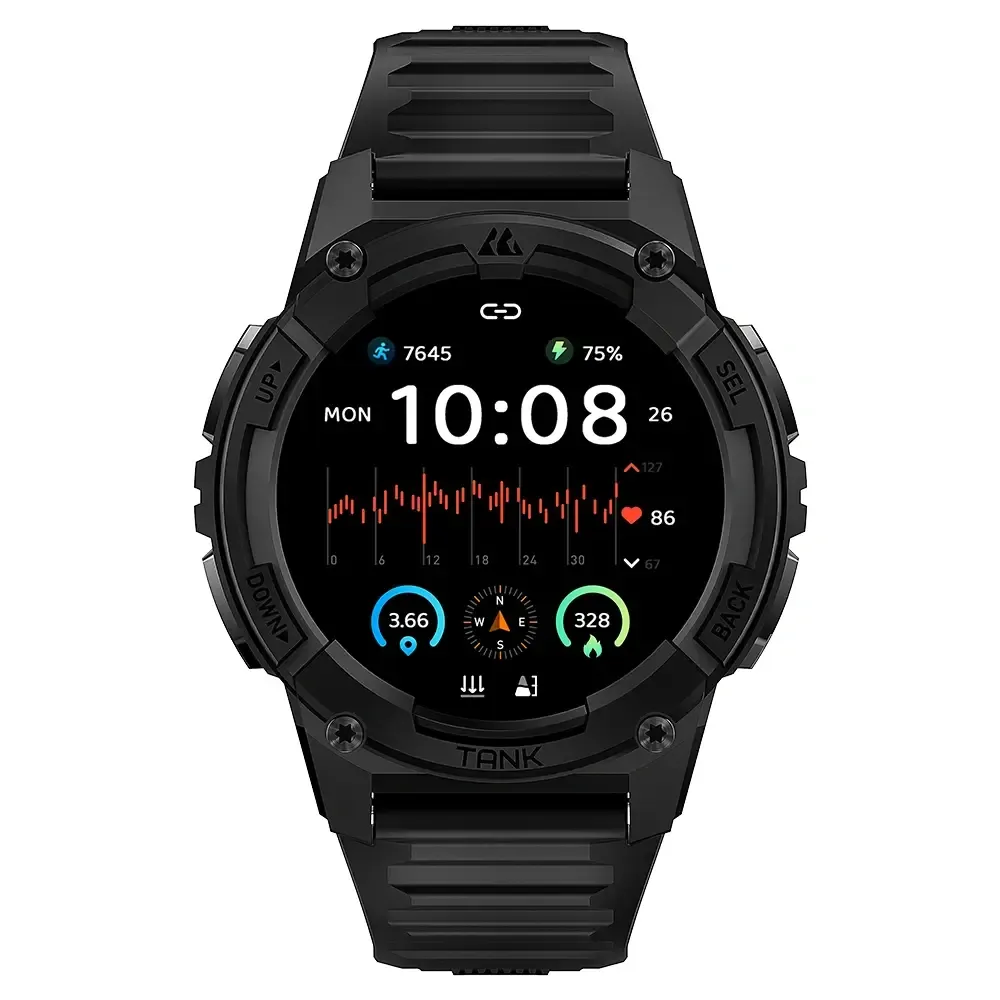ساعة ذكية قوية بشاشة AMOLED، بطارية طويلة العمر، GPS دقيق، أكتر من 170 وضع رياضي، ومقاومة مياه عالية 5ATM + IP69K.